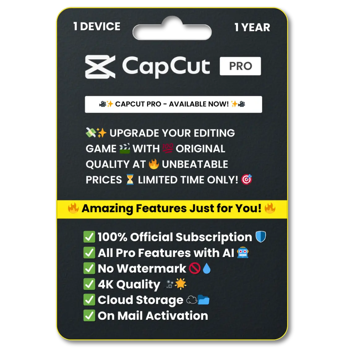 CapCut Pro For 1 Year Subscription